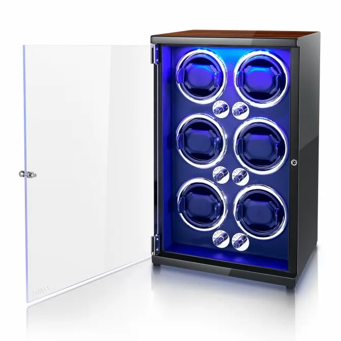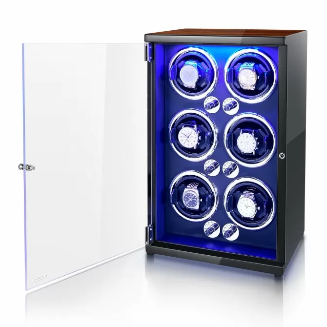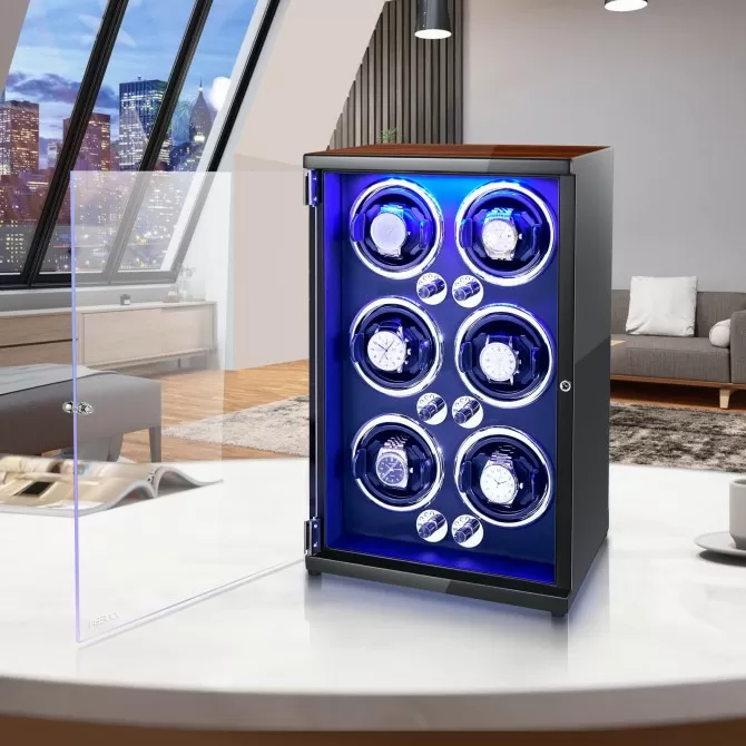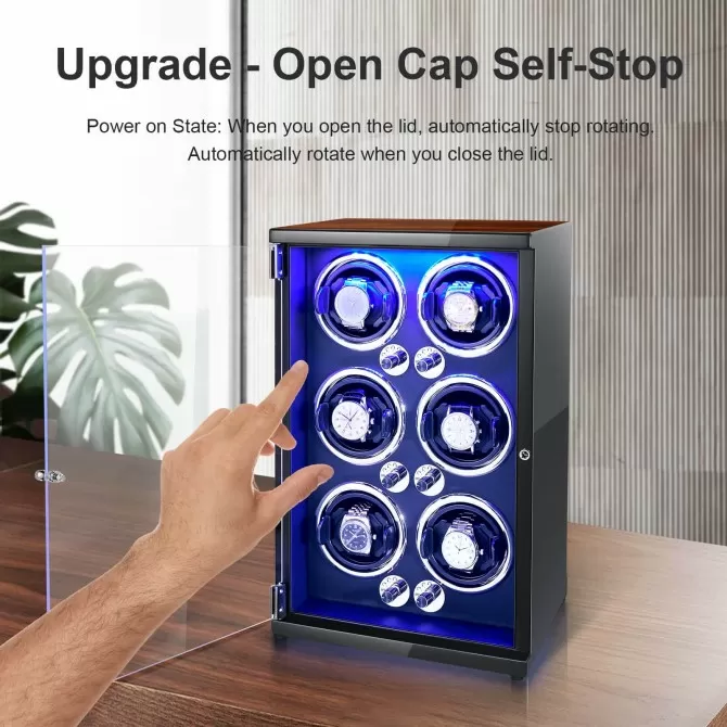 Buy6 Piece Watch Winder for Automatic Watches, Walnut Paint LED Watch Winder with Quiet Japanese Motor, Open The Cover and Stop, 5 Working Modes handemade onat $399.99.
