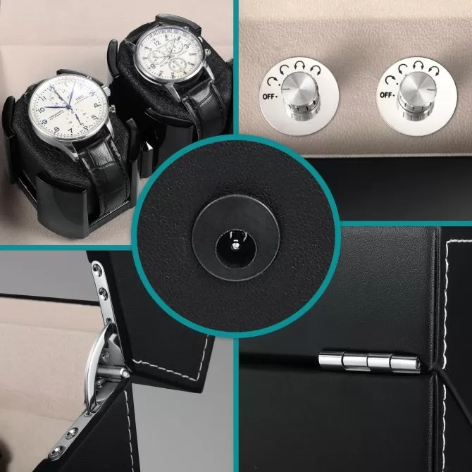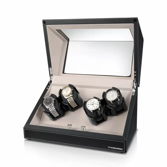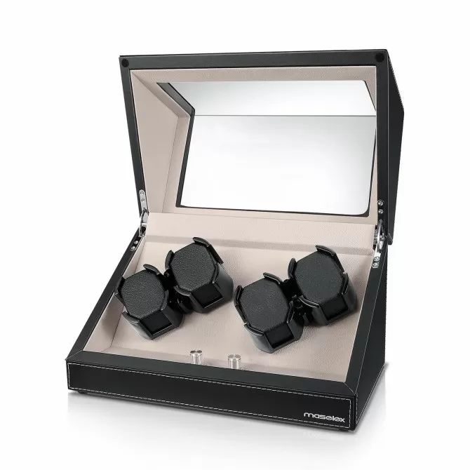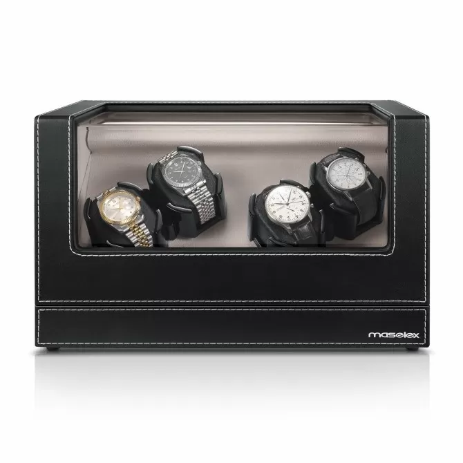 Maselex Black Leather 4 Automatic Watch Winder with Flexibility Watch Pillows