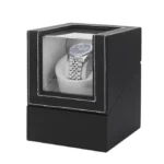 Buy Maselex Single Black Leather Shell Watch Winder with Gray Flannelet Interior on Single Watch Winder from , reliable online watch winder store.