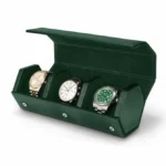 Three Green Microfiber Leather Portable Travel Watch Roll