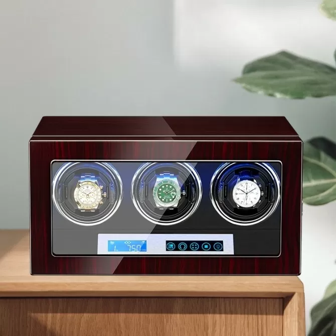 Buy Triple Watch Winders for Automatic Watches With Lcd Touch Screen in Black Interior on 3 Watch Winder from , reliable online watch winder store.