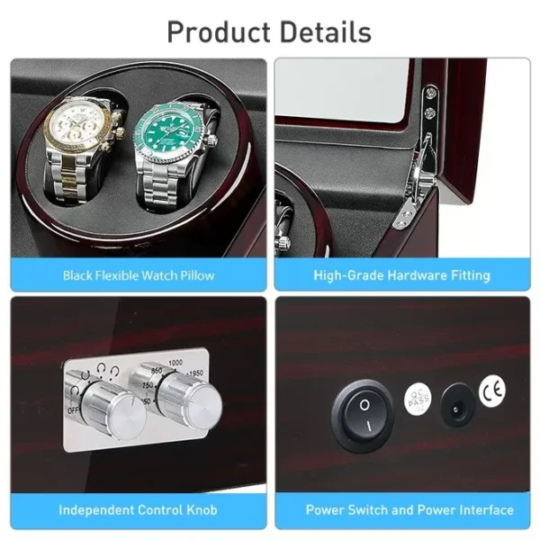 ● Large Capacity—There are 4 winder space and 6 storage space in the watch winder which can fit your needs.