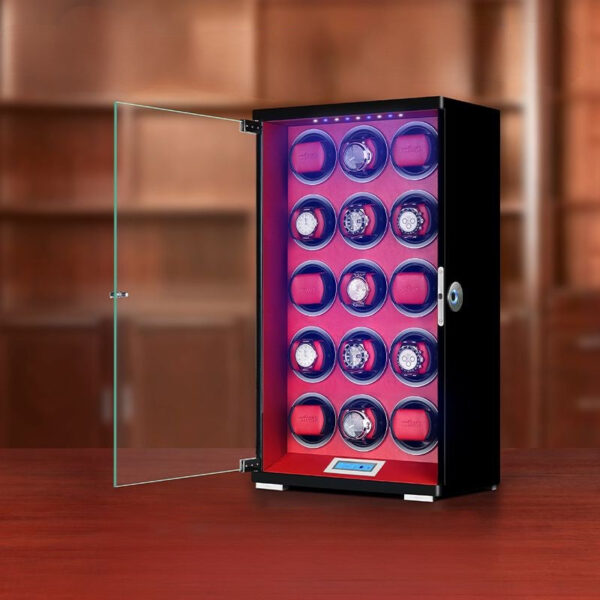 This wooden watch winding box is made of soft and durable microfiber leather, and its surface is treated with mirror-like piano paint, giving it a stylish and refined appearance. Designed in two classic colors and multiple watch winder: black and red for single and multiple watch, easy to choose. The newly upgraded semiconductor fingerprint recognition of this luxury automatic winder for watch is faster and safer. The killing rate of ultraviolet germicidal lamp is 99%, which can effectively prevent the spread of bacteria. It adopts a new generation of constant speed silent motor and fully enclosed design, so it operates quietly without causing interference. Smart touch screen design, more flexible and convenient.