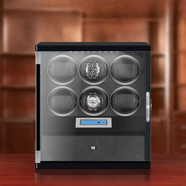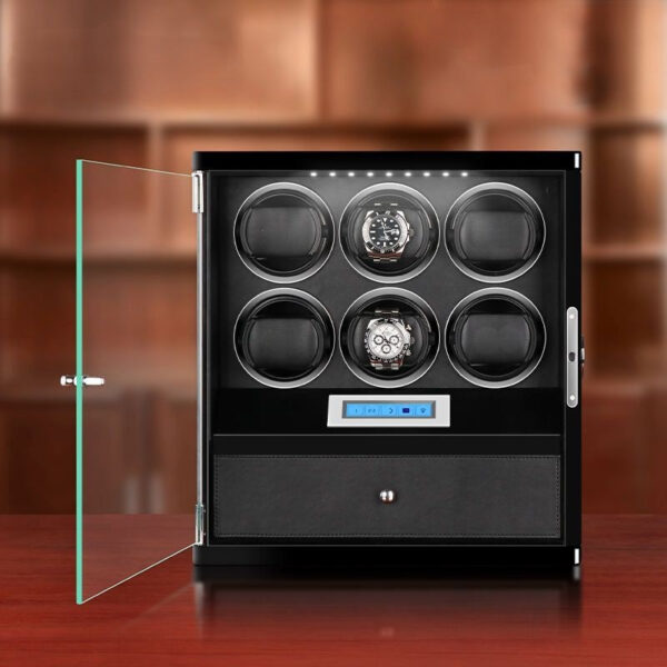 6 Wooden Watch Winder Box for Rolex with 1 Storage Space – Black