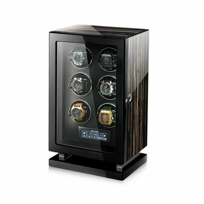 Black Warrior Intelligent 6 Slots Watch Winder in Striped Ebony Wood