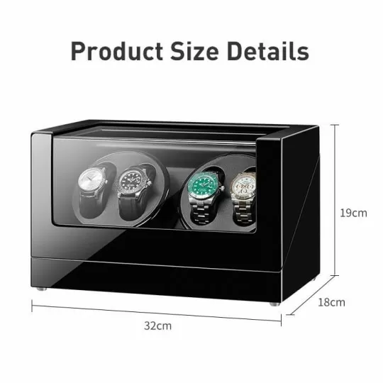 Embrace the essence of horological luxury with the black elegance 4-watch winder – a statement piece designed to enhance the care and display of your cherished automatic watches. Wrapped in a lustrous black finish, this quad watch winder marries minimalist elegance with state-of-the-art winding technology, creating a harmonious blend of form and function.