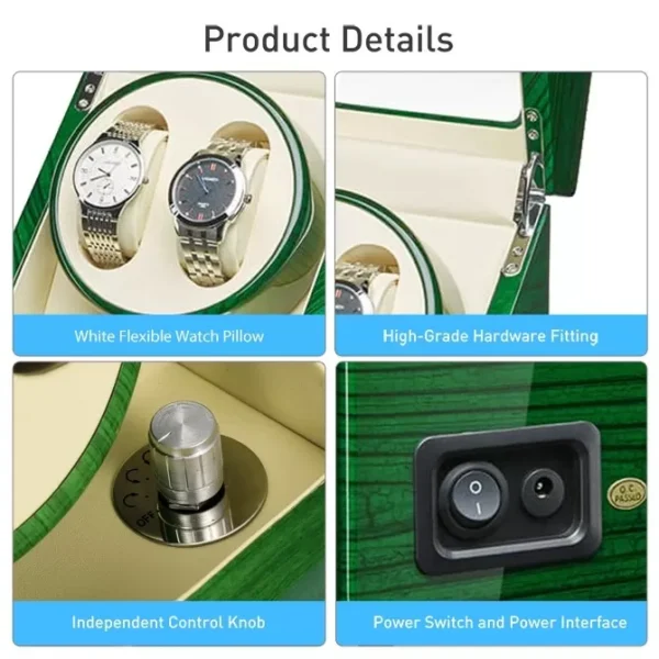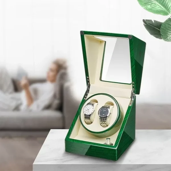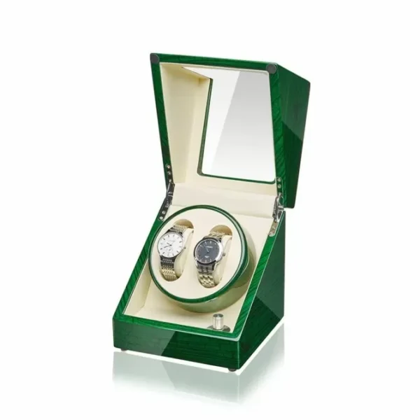 Double Automatic Watch Winder Box with Unique 3 Rotation Modes – Green