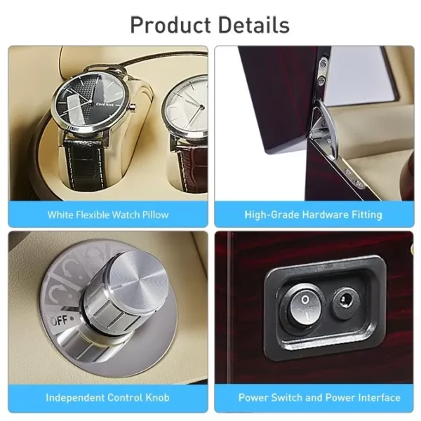 This watch winder uses high quality Japanese upgraded Mabuchi motor which is a well-known brand to make precision motors. These motors control noise under 10db that even though you put it in your bedroom it can also offer you an extremely quiet experience.