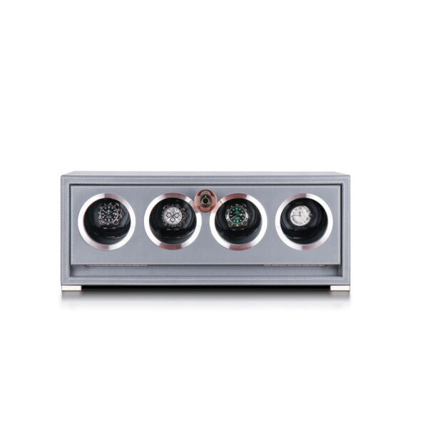 Fingerprint Lock Mechanical 4 Watch Winder Box – Silver