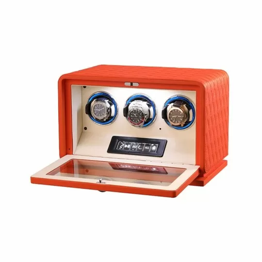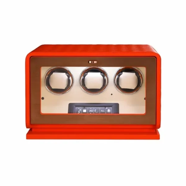 Luxury 3-Watch Winder with Orange Leather for Automatic Watches