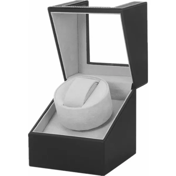 Buy Maselex Single Black Leather Shell Watch Winder with Gray Flannelet Interior on Single Watch Winder from , reliable online watch winder store.