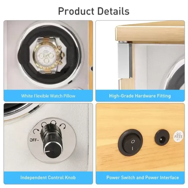 The watch winder is in wood pattern and off-white color which makes our product more beautiful and fashionable.