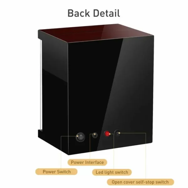 ● LED Light——There is a LED light switch at the back of the watch winder which can control the light. When you turn on the light you can see your watch more clearly at night.