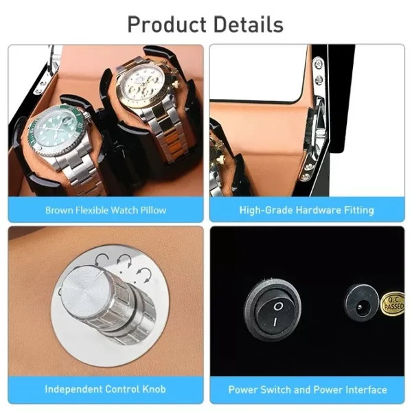 There are 5 modes to adjust the winding way that can match different brand of watches.