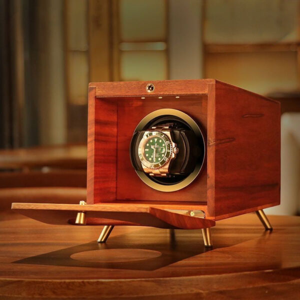 URORO Single Watch Winder for Mechanical Watches utilizes high-end sand billy solid wood to create an elegant and sophisticated appearance, adding a touch of luxury to your watch display.