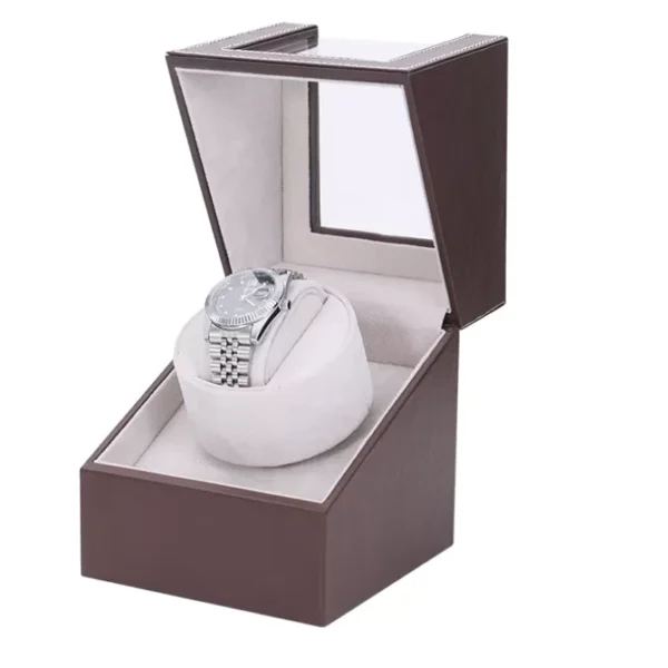 Single Watch Winder Box Leather Brown with Gray Flannelet Interior