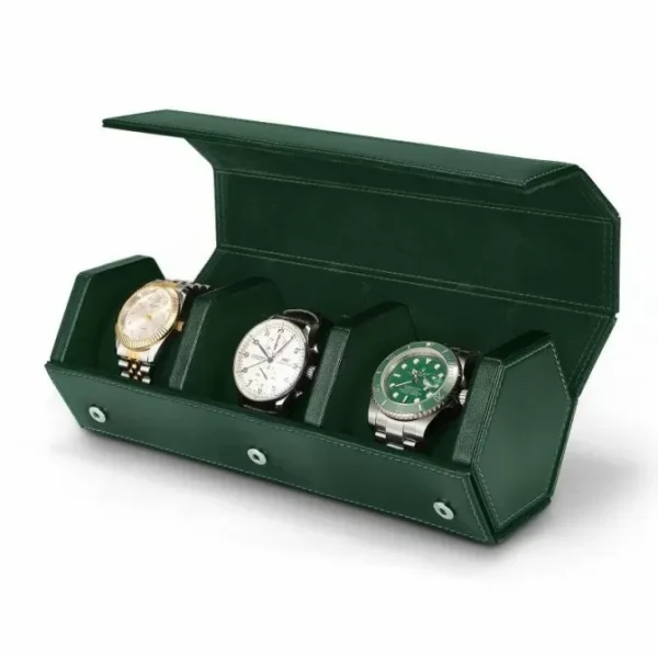 Exterior leather – The green watch box is made of natural and stylish light green leather. Delicate stitching finishes and comfortable suede enhance the tactile feel of the interior. Lightweight and portable, the green watch roll is perfect for travel or on the go.
